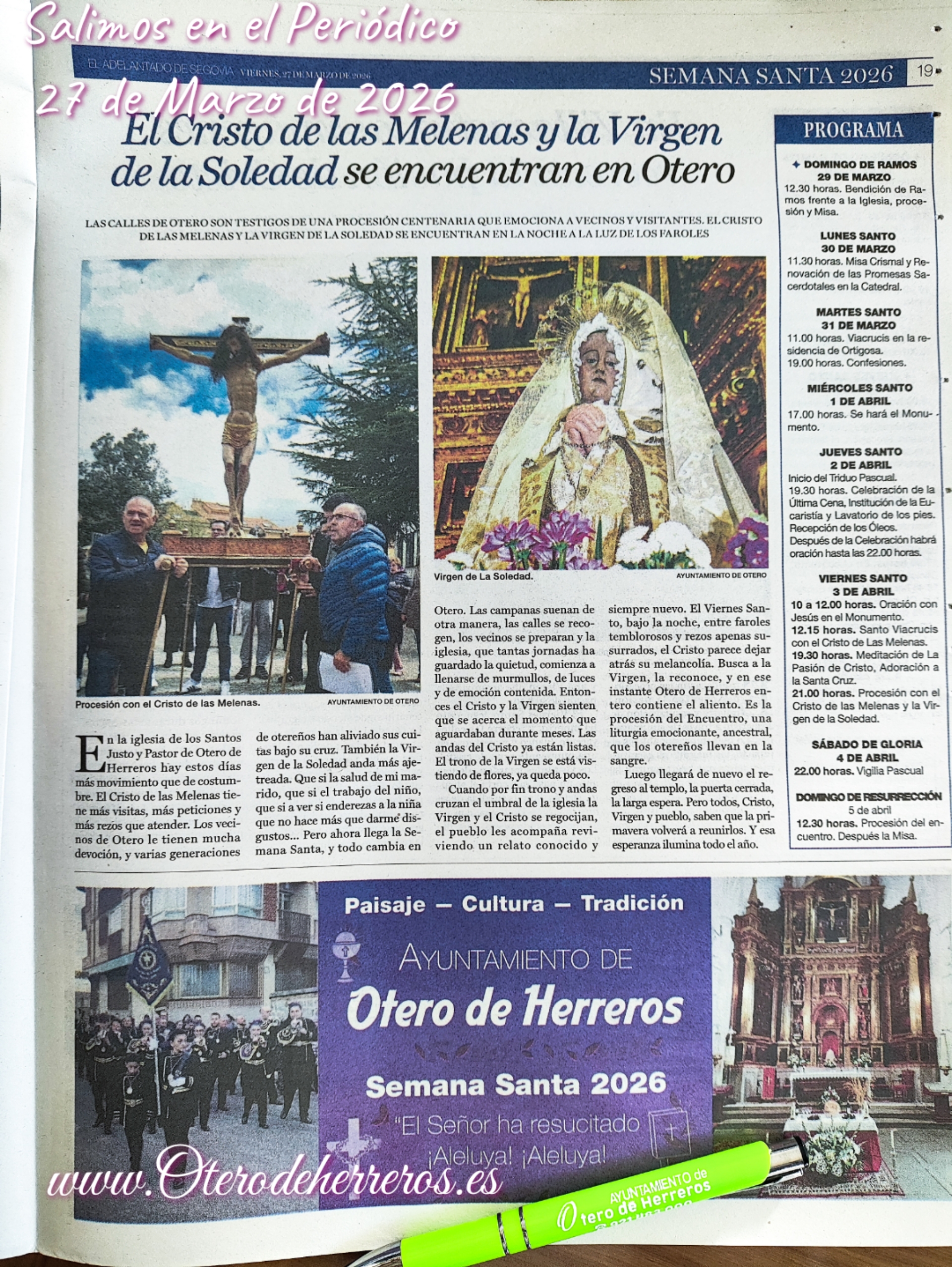 El Adelantado de Segovia hoy 26 de de Marzo de 2026 en el periódico.Publican una noticia sobre la Semana santa en nuestra Localidad. Haciendo referencia al Cristo de las Melenas … Leer más