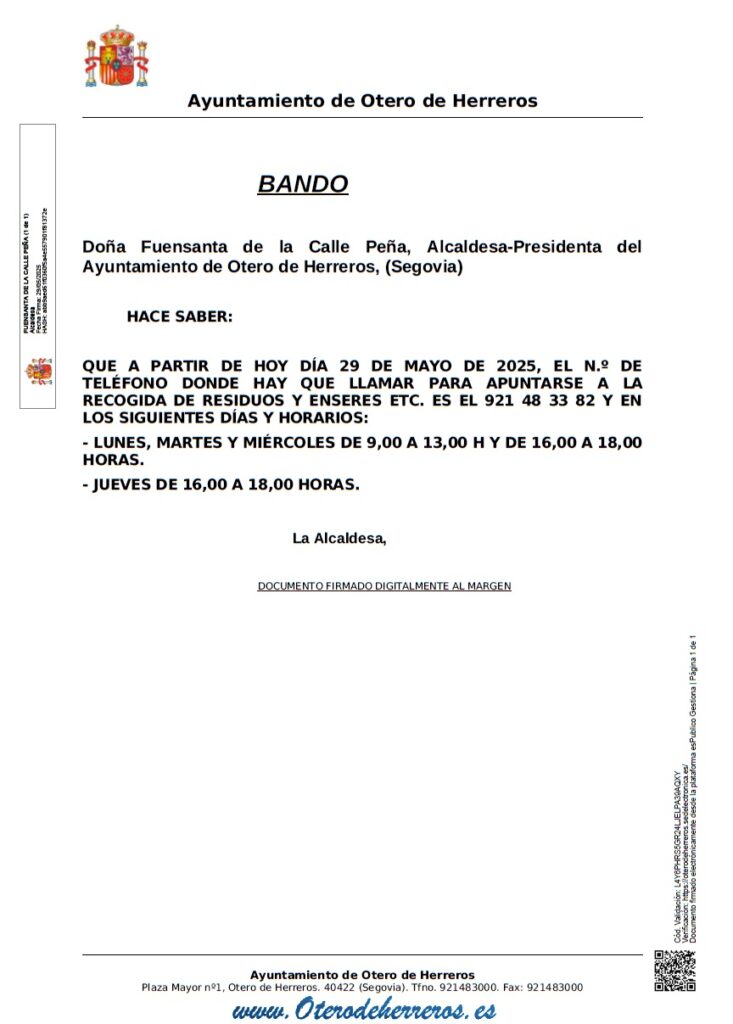 Pza. Mayor s/n – 40422 Otero de Herreros (Segovia) | T. 921 483 000 |