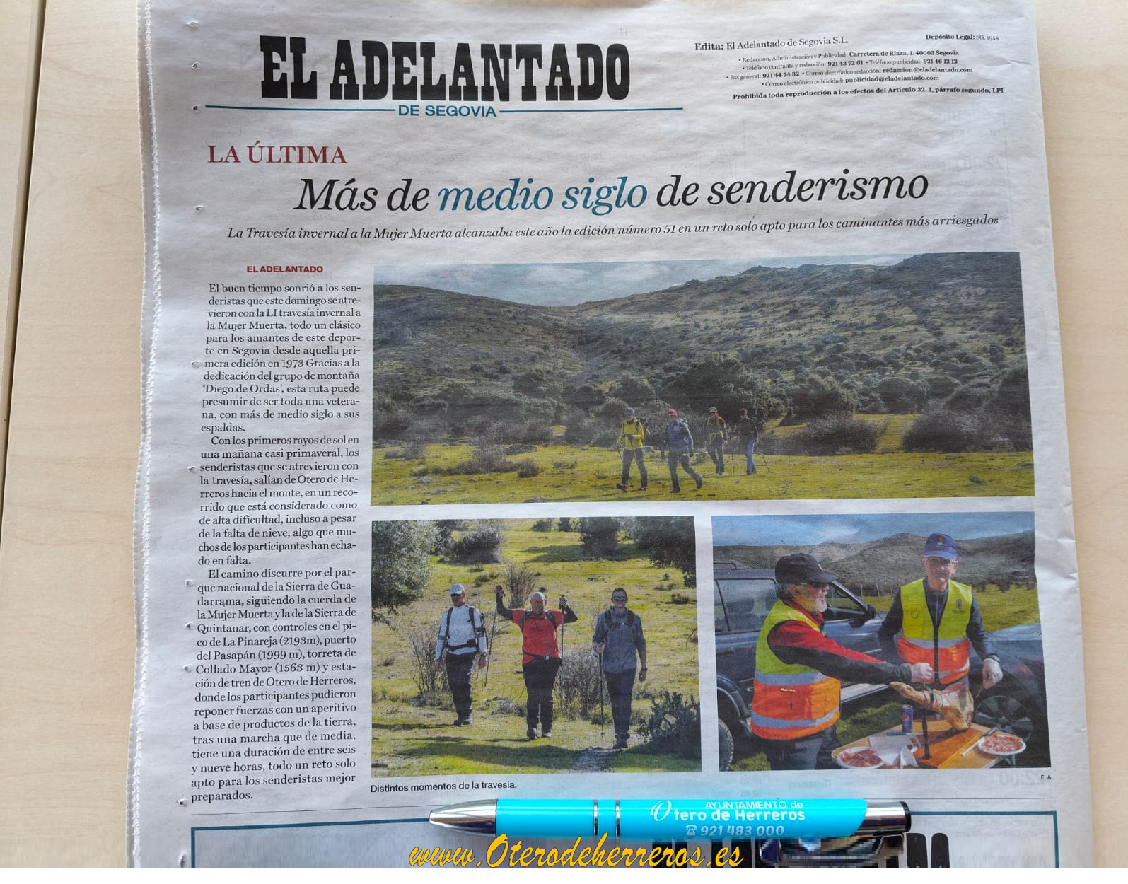 Salimos en el Periódico El Adelantado de Segovia (Lunes 17 de Febrero de 2025 Travesía Invernal de la Mujer Muerta)