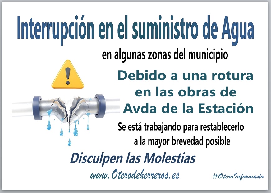 Debido a una rotura en las obras que se están realizando en Avenida de la Estación. Existe una Interrupción en el suministro de Agua en algunos