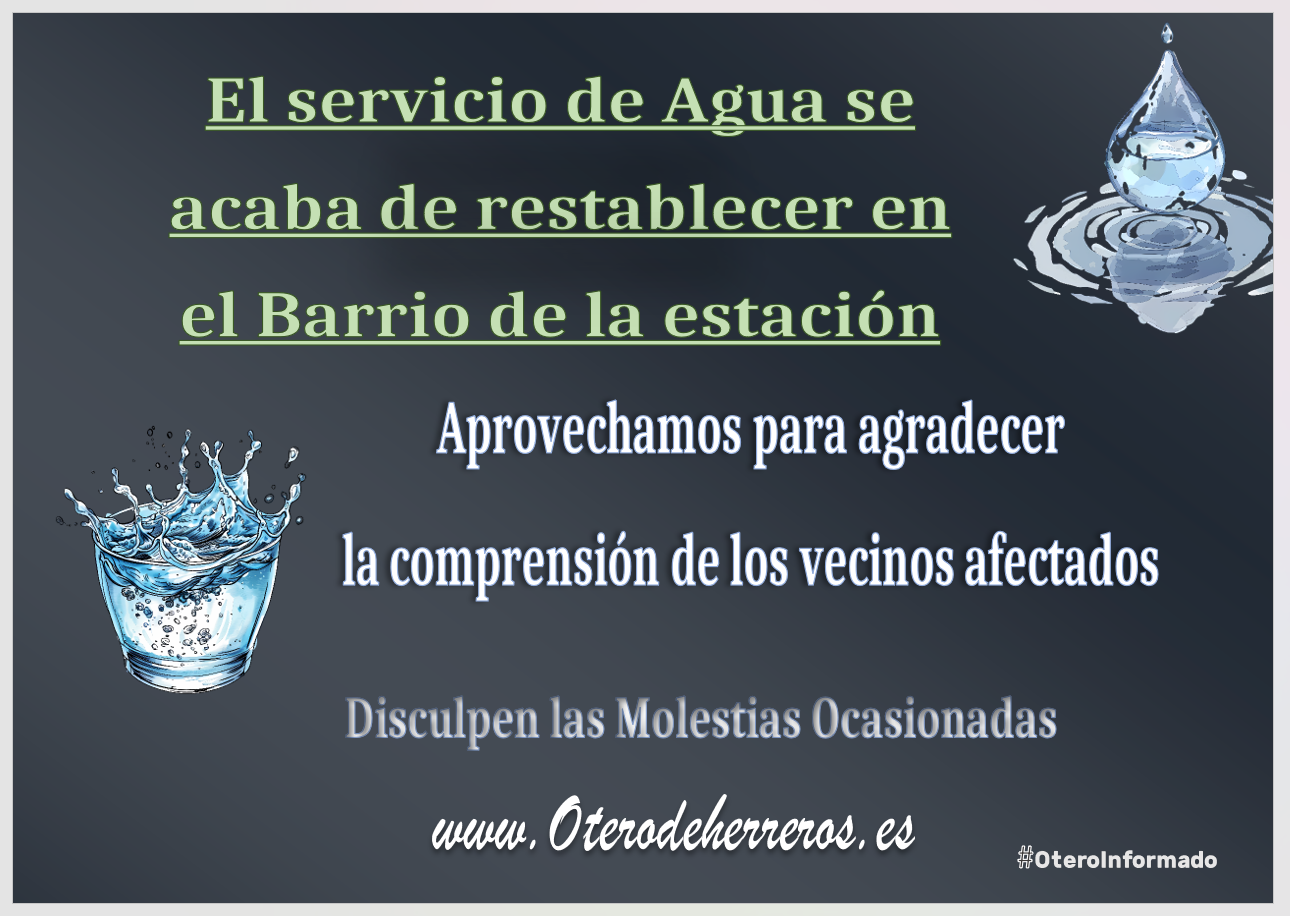 El servicio de Agua se acaba de restablecer en el Barrio de la estación