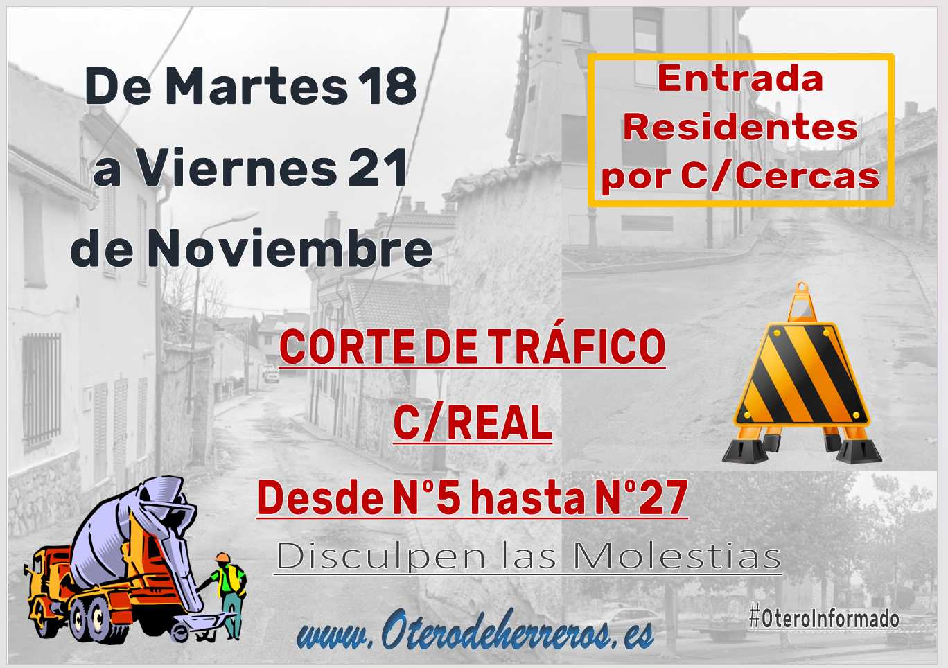 El próximo martes 18 al viernes 21 de Noviembre se va proceder a cortar al tráfico la C/Real para realizar las labores pendientes. El corte