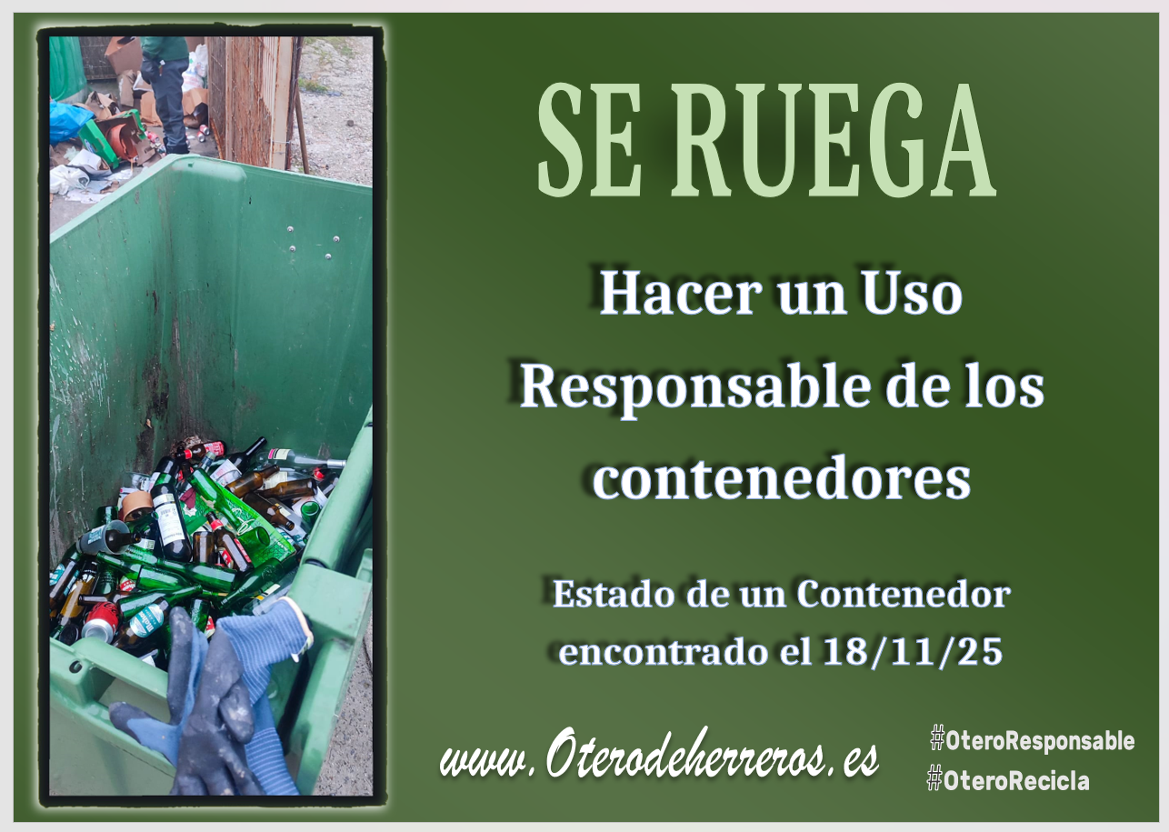 Hace unos días uno de los contenedores se encontraba como se muestra en el cartel adjunto. Desde el Ayuntamiento, solicitamos a los vecin@s que, hagan