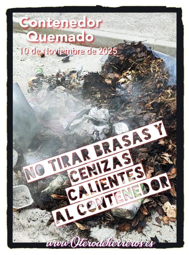 Desde el Ayuntamiento , solicitamos a los vecin@s que, para la seguridad de tod@s, antes de tirar brasas o cenizas a los contenedores, deben asegurarse que estén bien apagadas.