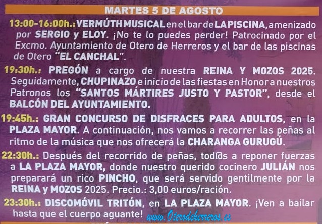 PROGRAMA FIESTAS- MARTES 5 DE AGOSTO