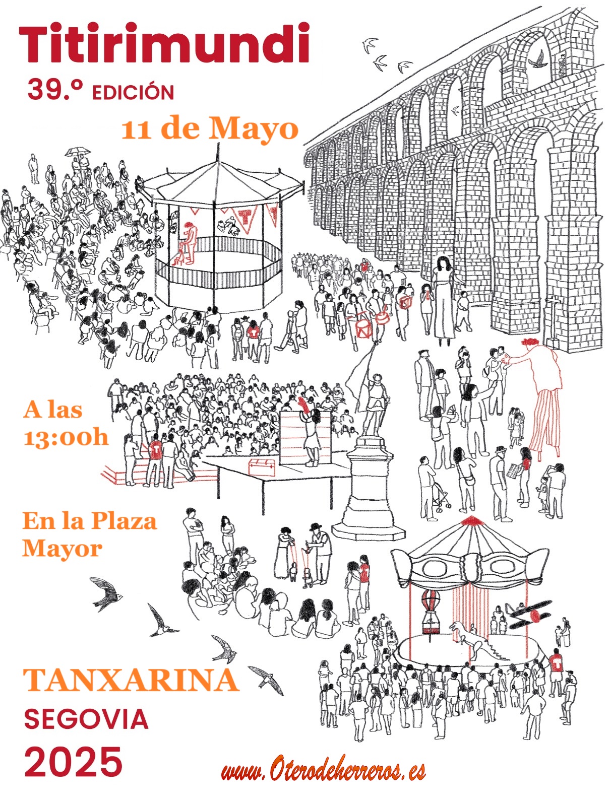 TANXARINA TITIRIMUNDI 39º edición del festival titirimundi. El 11 de Mayo a las 13:00h en la Plaza Mayor Obradoiro de títeres y marionetas, Tanxarina es una compañía gallega fundada en 1983 por varios ex alumnos de Harry Tozer, profesor de construcción y manipulación de títeres del Institut del Teatro de Barcelona, y de otros profesores ... Leer más |