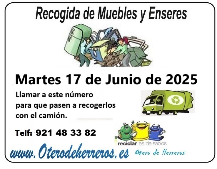 Para usar el servicio de recogida de Enseres, se deberá llamar al número que aparece en el cartel con antelación indicando que se tiene que retirar y donde. LA RECOGIDA SE REALIZARÁ A LO LARGO DEL DÍA NO DEJAR EN CONTENEDORES NI CALLES POR UN OTERO LIMPIO Y BONITO ¡ESTÁ EN MANOS DE TOD@S! #OteroInformado ... Leer más
