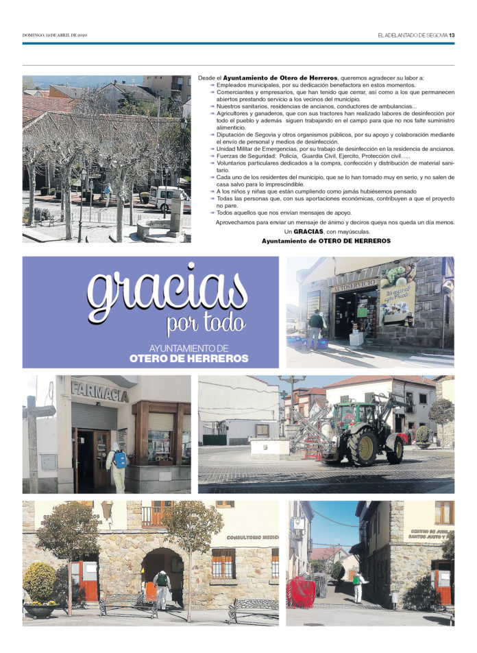 Desde el Ayuntamiento de Otero de Herreros, queremos agradecer su labor a:
