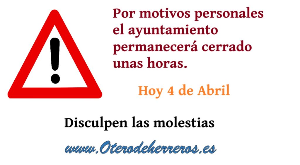 Hoy 4 De Abril el ayuntamiento permanecerá cerrado unas horas