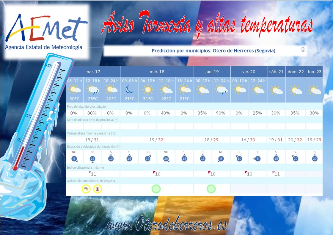 Información hoy martes, hay alerta amarilla por tormentas y altas temperaturas. ¡¡Mucha precaución!! ___________________ #OteroInformado #OteroPrecavido