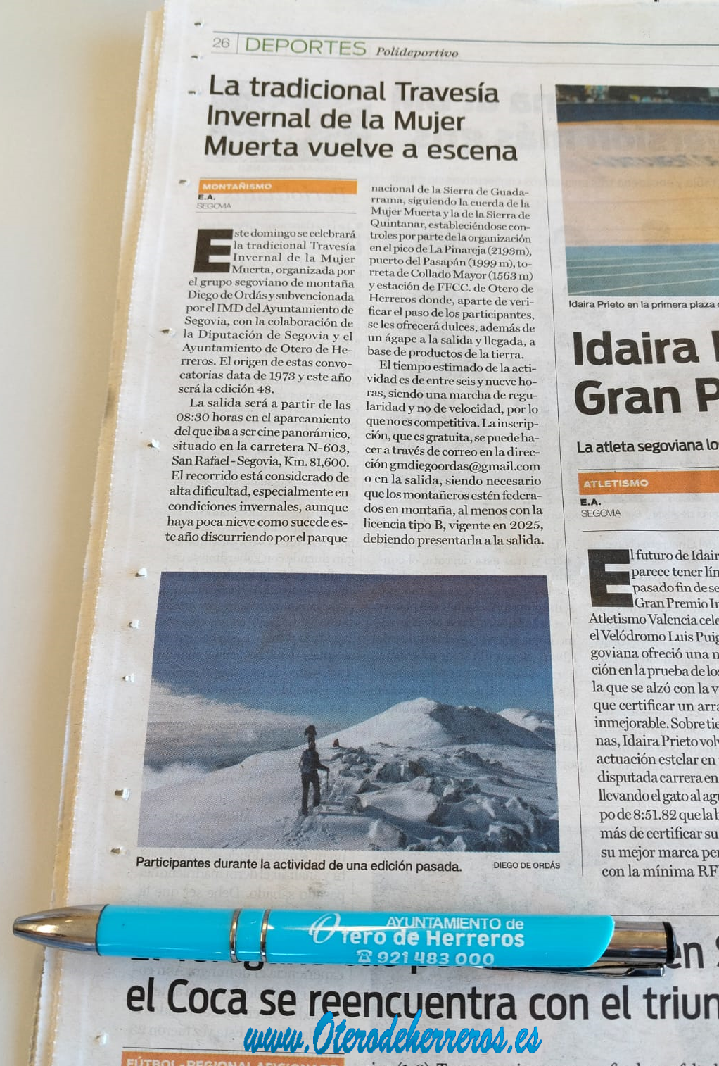 Salimos en el Periódico El Adelantado de Segovia (Martes 11 de Febrero de 2025 Travesía Invernal de la Mujer Muerta)