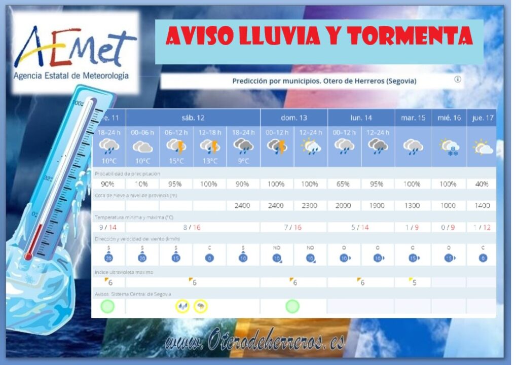 Información a día de hoy para los próximos días, Estamos en alerta por lluvia y tormenta .