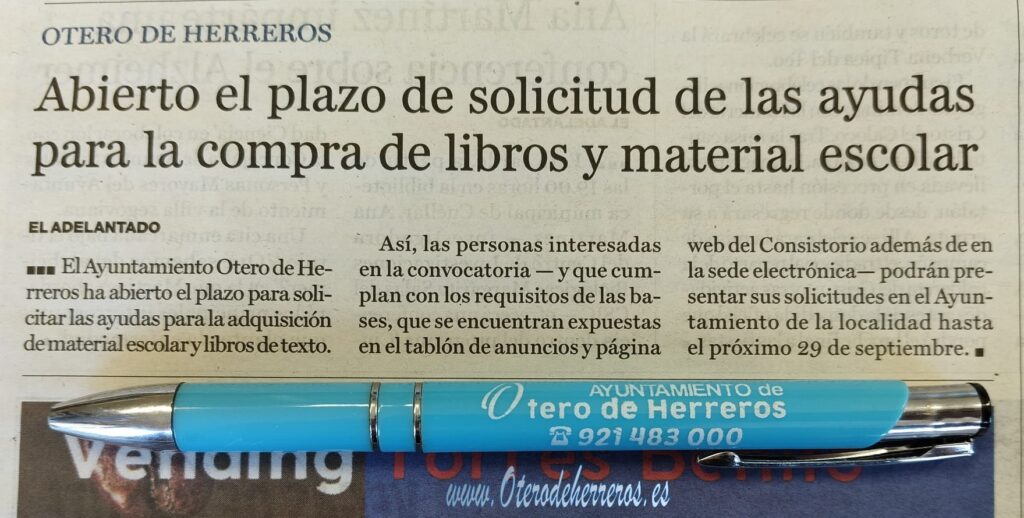 Salimos en el Periódico El Adelantado de Segovia (Jueves 18 de Septiembre de 2025 Abierto el Plazo de Solicitud de las Ayudas para la Compra de Libros y Material Escolar»)