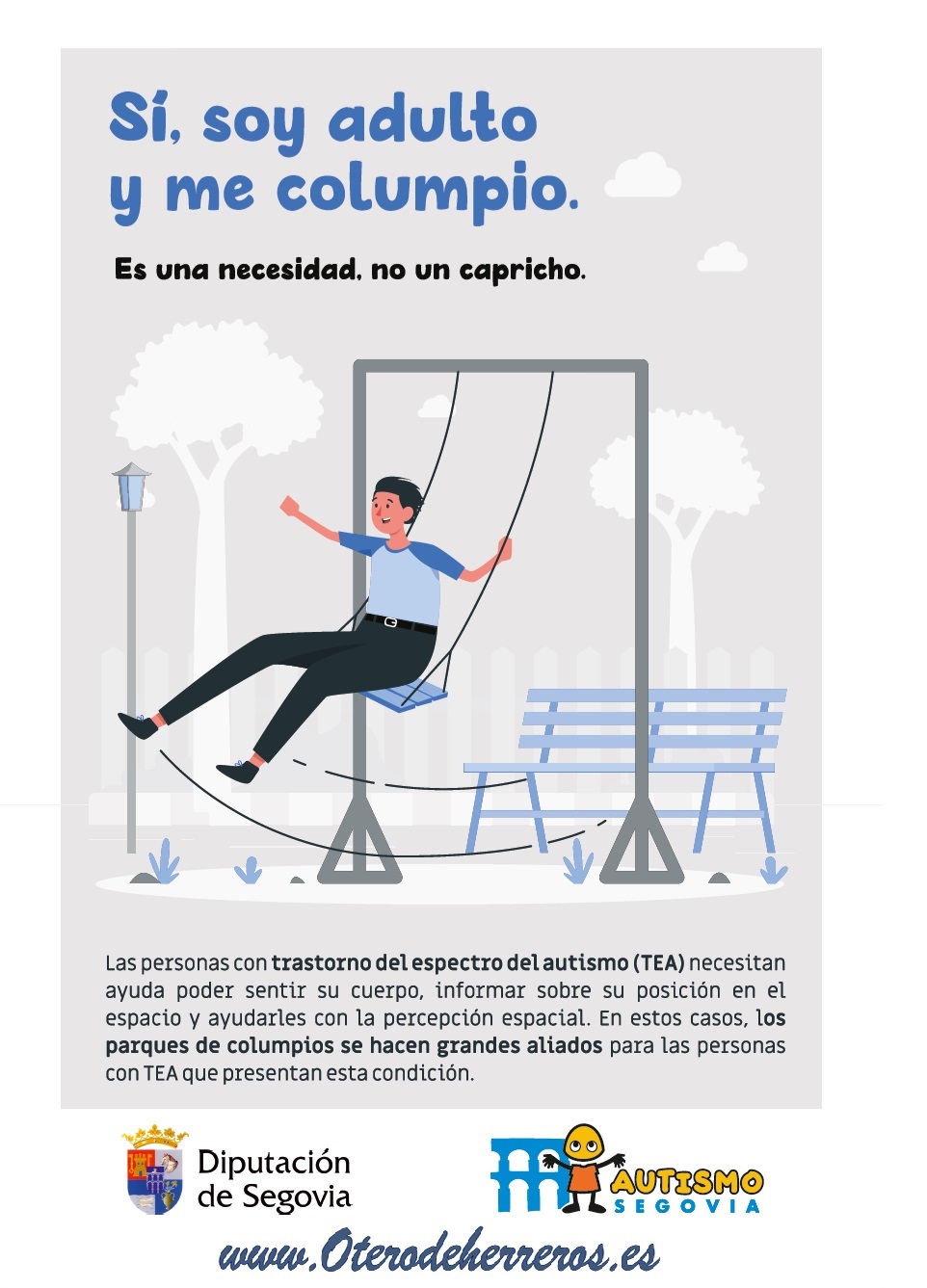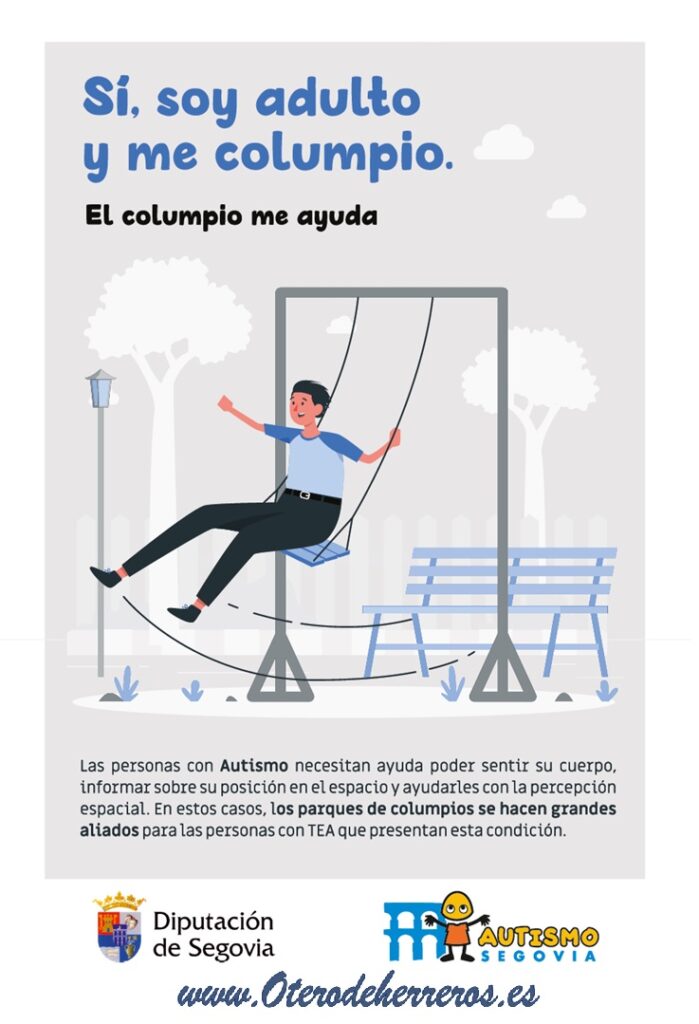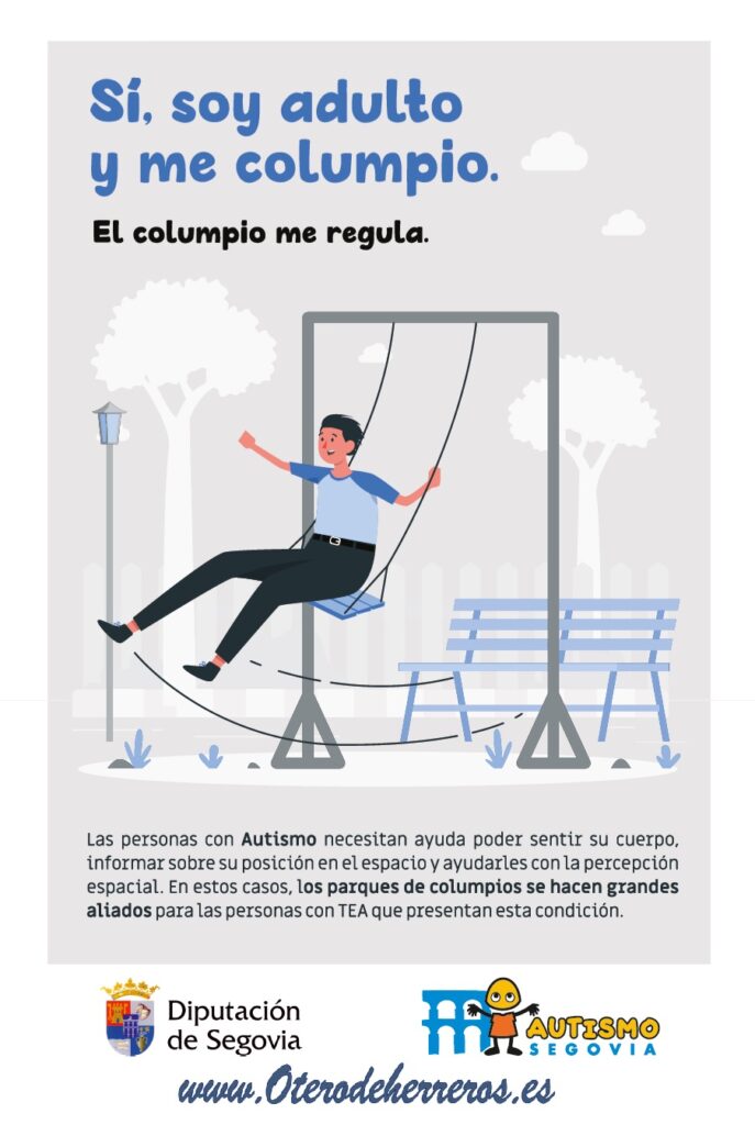 La Diputación y Autismo de Segovia llevan acabo la campaña «Sí, soy adulto y me columpio» con la intención de sensibilizar a la población de toda la provincia de la necesidad de algunas personas con TEA (Trastorno del espectro Autista) a columpiarse, aunque sean adultos.