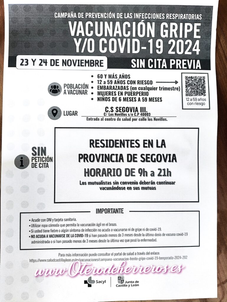 Vacunación Gripe- COVID sin cita día 23,24 de Noviembre en Segovia